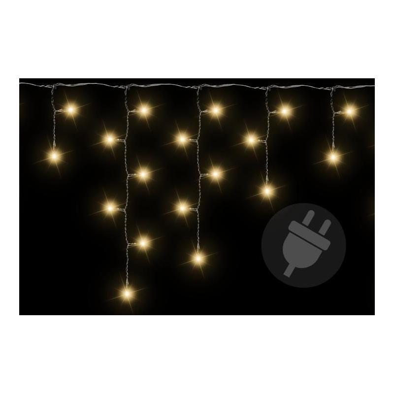 Světelný déšť s délkou světelné části 5 m složený ze 144 LED diod. Je ideální pro osvětlení zábradlí, fasád domů, okapů, výloh obchodů apod.