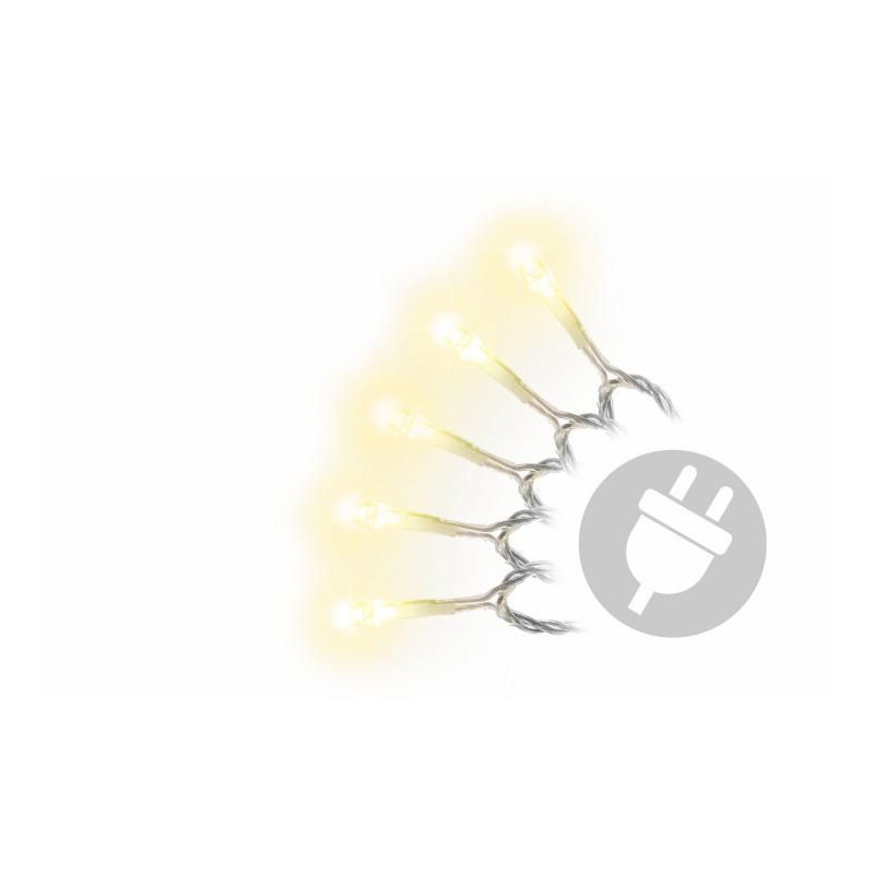 Kratší světelný řetěz do interiéru (není voděodolný) délky světelné části 5 m s celkovým počtem 50 LED diod svítící teple bílý ... Více v detailním popisu níže.
