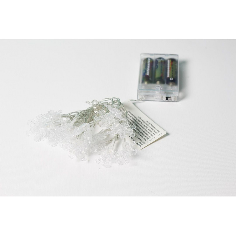 Vánoční světelný řetěz s úspornými LED diodami s délkou světelné části 2 m a celkem 20 kusy svítícících vloček. Je vybavený průhledným kabelem, který není téměř viditelný.