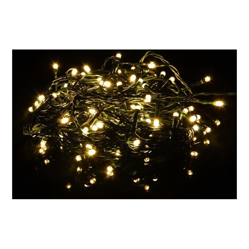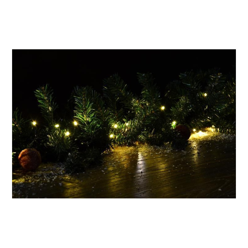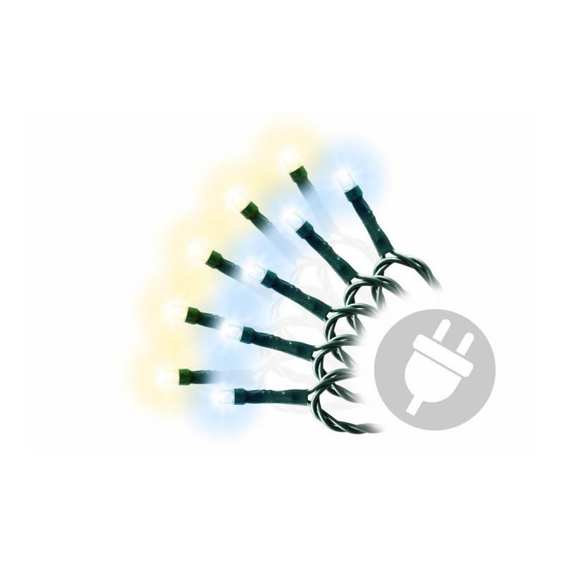 Vánoční LED řetěz s 9 různými blikajícími funkcemi a možností nastavení barvy světla (studeně bílá nebo teple bílá barva – viz. foto). Délka světelné části 9,9 m.