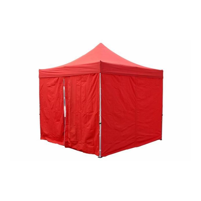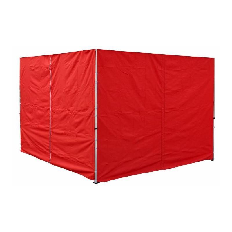Samostatné boční plachty pro PROFI stany v rozměru 3x3 m červené barvy. Jedna stěna má uprostřed zip a slouží jako vstup do stanu, druhá stěna je bez zipu (plná).
