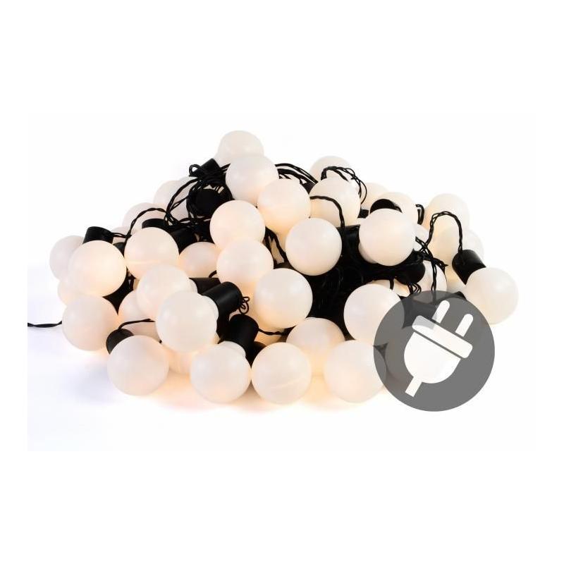 Venkovní řetěz s 50 kusy bílých koulí v celkové délce 18,5 m (včetně napájecího kabelu) vhodný pro nejrůznější oslavy, večírky, nebo i pro vytvoření příjemné večerní atmosféry během relaxace na zahradě, nebo třeba při grilování.