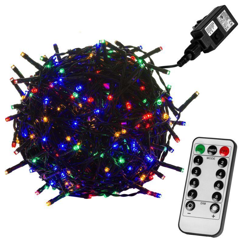 Pestrobarevný vánoční světelný řetěz využívající namísto klasických žárovek moderní úsporné LED diody. Tento typ řetězu má celkem 8 světelných funkcí – kromě trvalého svícení nejrůznější druhy blikání včetně časovače, který jej může pravidelně zapínat a vypínat. Řetěz má zelený kabel, je voděodolný (vhodný pro vnitřní i venkovní použití) a délka jeho světelné části je 5 m (napájecí kabel má rovněž délku 5 m).