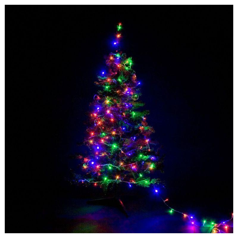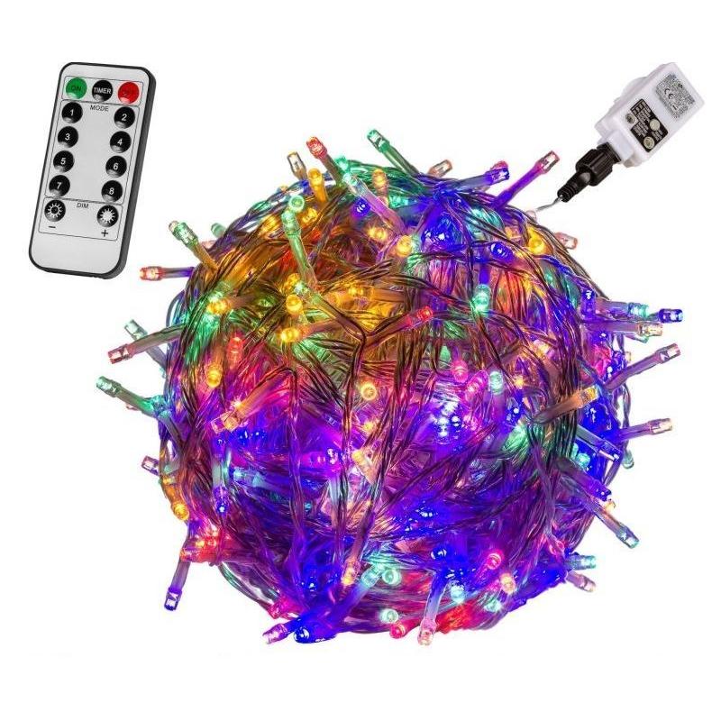 Pestrobarevný vánoční světelný řetěz využívající namísto klasických žárovek moderní úsporné LED diody. Tento typ řetězu má celkem 8 světelných funkcí – kromě trvalého svícení nejrůznější druhy blikání včetně časovače, který jej může pravidelně zapínat a vypínat. Řetěz má transparentní (průhledný) kabel, je voděodolný (vhodný pro vnitřní i venkovní použití) a délka jeho světelné části je 5 m (napájecí kabel má rovněž délku 5 m).