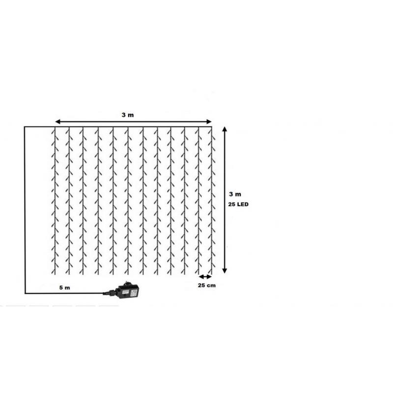 Světelný závěs určený především jako dekorace v období vánoc, ale lze jej využít při nejrůznějších příležitostech po celý rok. Díky voděodolnému provedení (krytí IP 44) je vhodný pro vnitřní i venkovní použití. Čtvercové provedení s rozměry 3x3 m. Celkem obsahuje 300 LED diod svítící studeně bílou barvou.