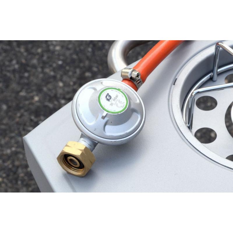 Součástí balení je spojovací hadice k plynové bombě a redukční ventil.