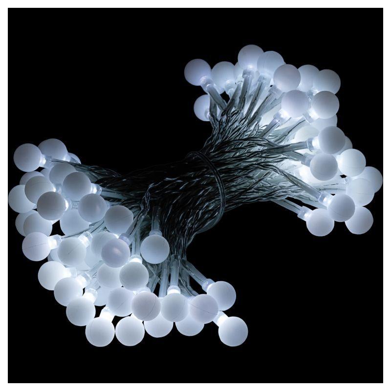 Párty světelný řetěz se studeně bílými plastovými kuličkami, který je vhodný rovněž jako vánoční, nebo dekorativní osvětlení. Voděodolná konstrukce ... Více v detailním popisu níže.