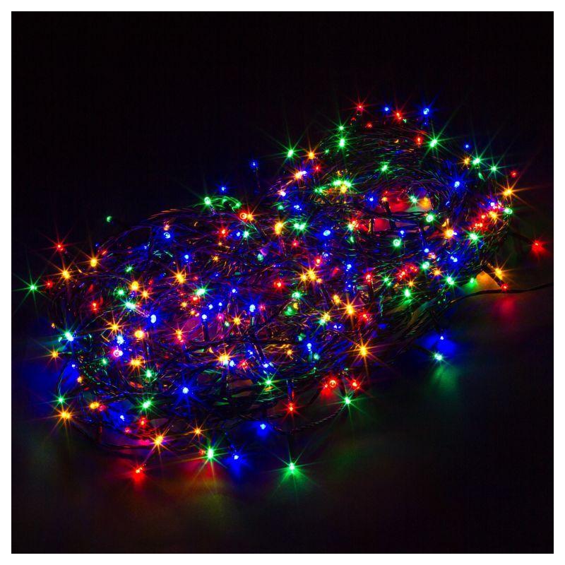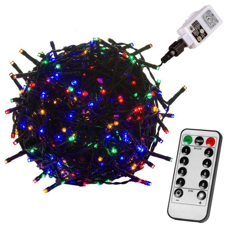 Barevný vánoční světelný řetěz na dálkové ovládání s napájením z klasické elektrické zásuvky 230 V. Voděodolné provedení s krytím IP 44, díky čemuž je vhodný pro vnitřní i venkovní použití. Celkem 400 LED diod; délka 40 m + 5 m napájecí kabel.