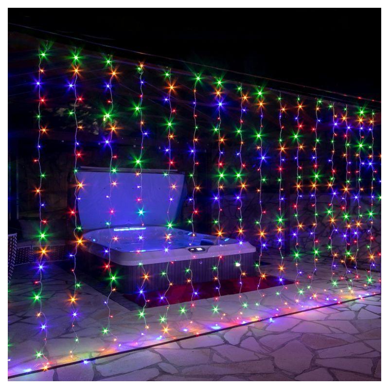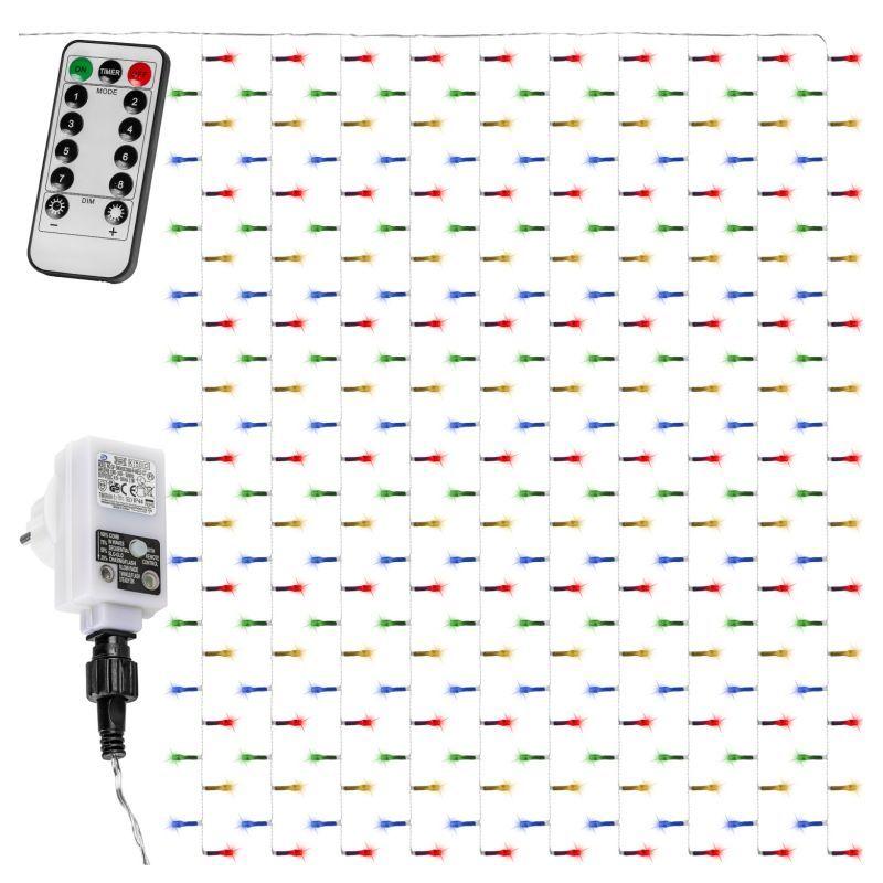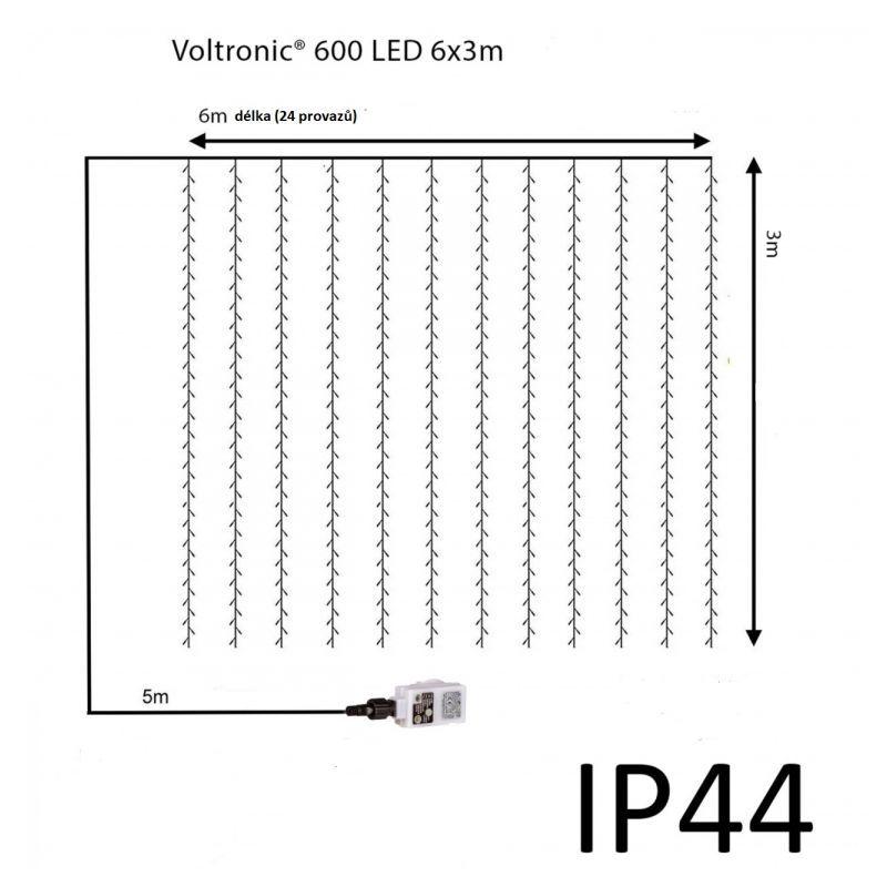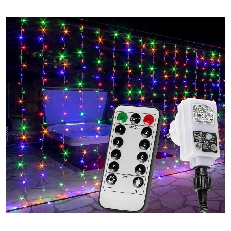 Vánoční svítící závěs s moderními LED diodami v kombinaci barevných LED diod o rozměrech 6x3 m (šířka x výška). Napájení z klasické elektrické zásuvky 230 V. Průhledný kabel. Voděodolné provedení s krytím IP44 (závěs je vhodný pro vnitřní i venkovní použití). Je vybavený časovačem, který jej může v pravidelných intervalech rozsvěcet a zhasínat + světelnými efekty (trvalé svícení i různá blikání).