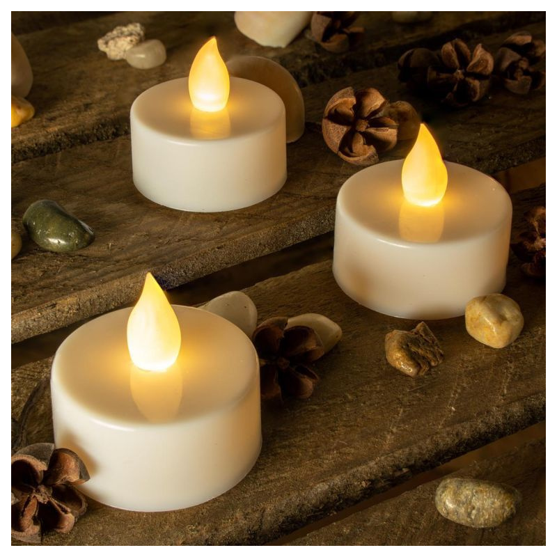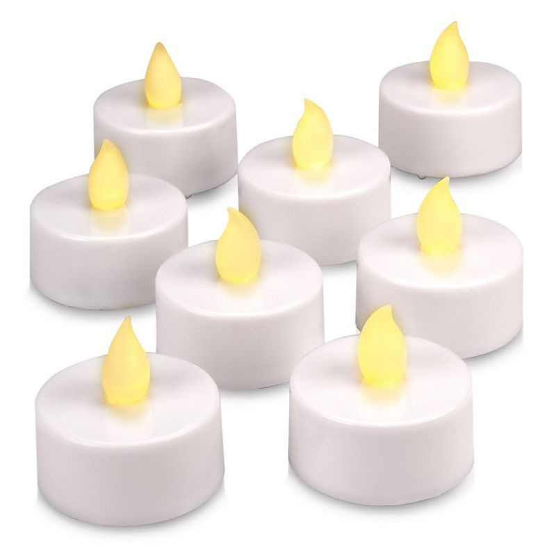 Sada 8 kusů elektrických dekorativních čajových svíček na baterie (typ CR2032, jsou součástí balení), jejichž výhodou je především zcela bezpečný provoz, při kterém nehrozí riziko požáru. Průměr svíčky je 37,5 mm, výška včetně plamínku 40 mm. Barva bílá. Jsou určené pouze pro interiérové použití.