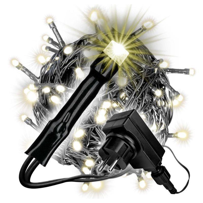 Klasický LED řetěz na vánoční stromeček, ale i pro jiné umístění ve vnitřních i venkovních prostorách Vašeho obydlí. Délka světelné části 23,9 m (napájecí kabel 10 m, celková délka 33,9 m). Provedení bez blikající funkce- řetěz trvale svítí. Součástí je časovač, který může (ale nemusí- záleží na nastavení) řetěz pravidelně zapínat a vypínat. Svítí teple bílým světlem.
