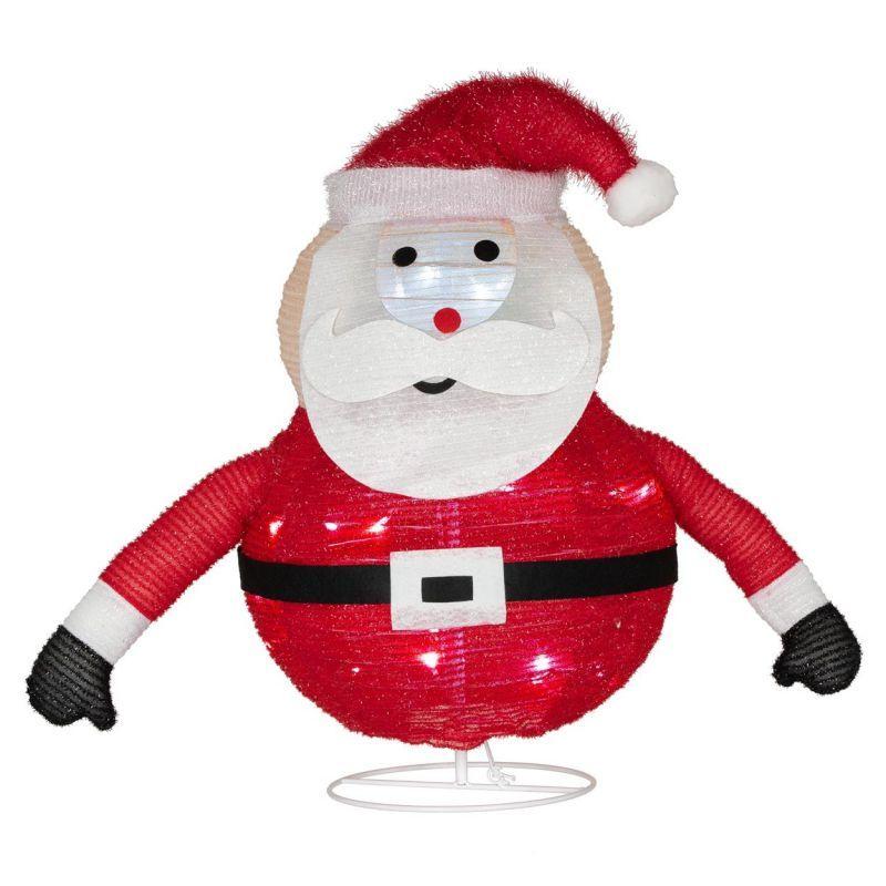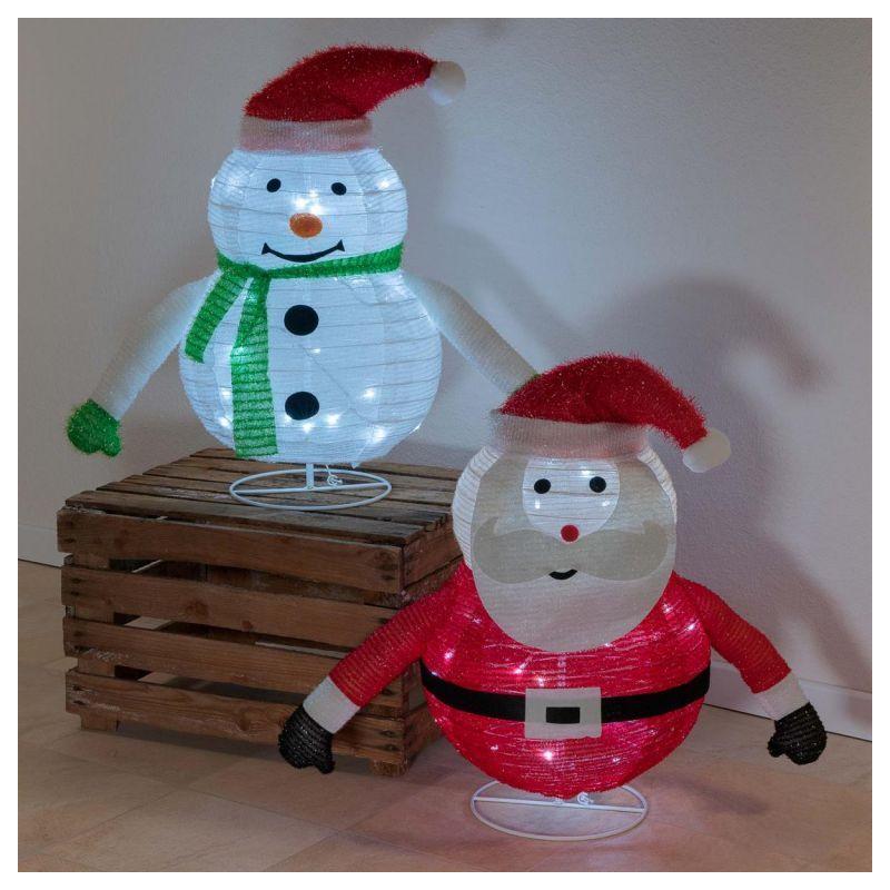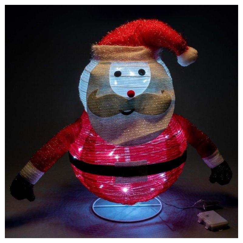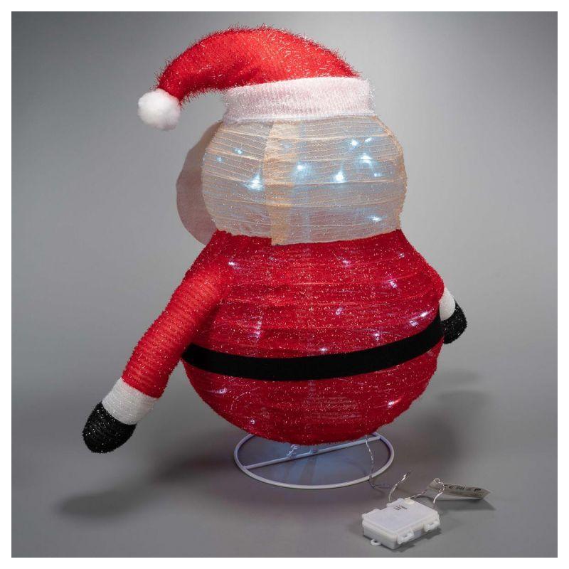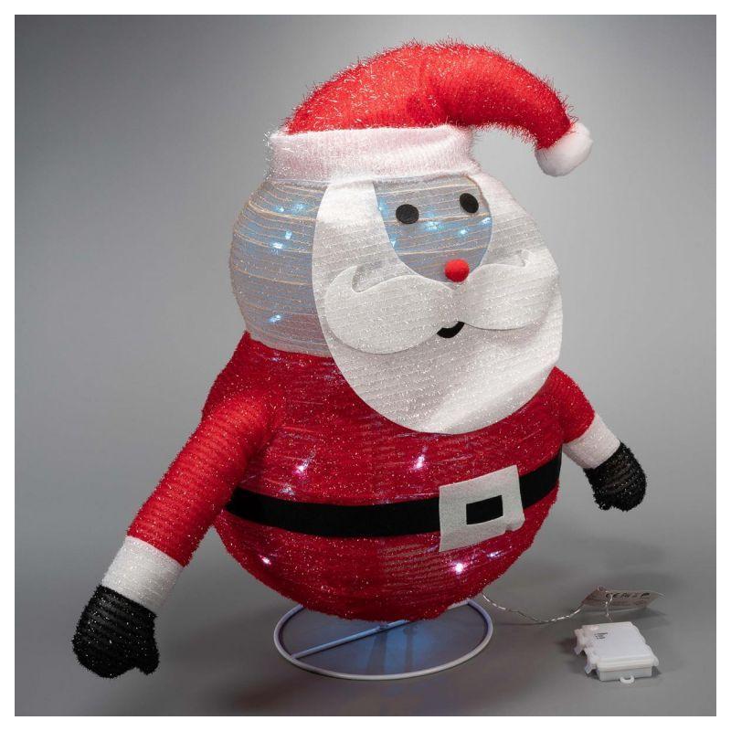 Osvětlená vánoční figurka Santy Clause určená pro vnitřní i venkovní použití, která je tudíž vhodná před dům, na terasu, zahradu, ale i kamkoliv do interiéru. Je napájena bateriemi (3xAA - klasické tužkové) a vybavena časovačem, který ji může v pravidelných intervalech zapínat a vypínat. Výška 58 cm (včetně stojanu).