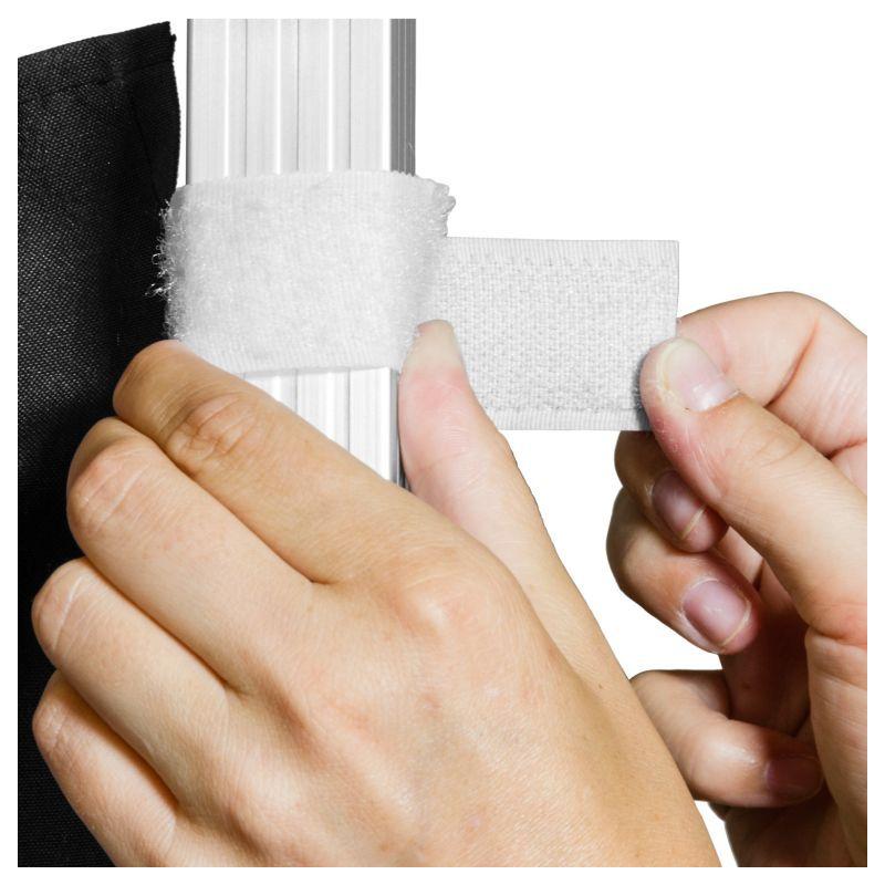 Montáž a demontáž je velmi rychlá a jednoduchá- boční stěnu jednoduše ke stanu upevníte systémem závěsných háčků a proužků na suchý zip.