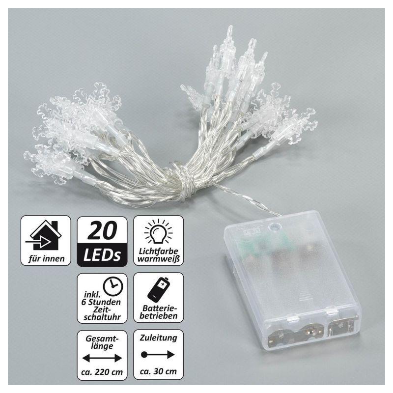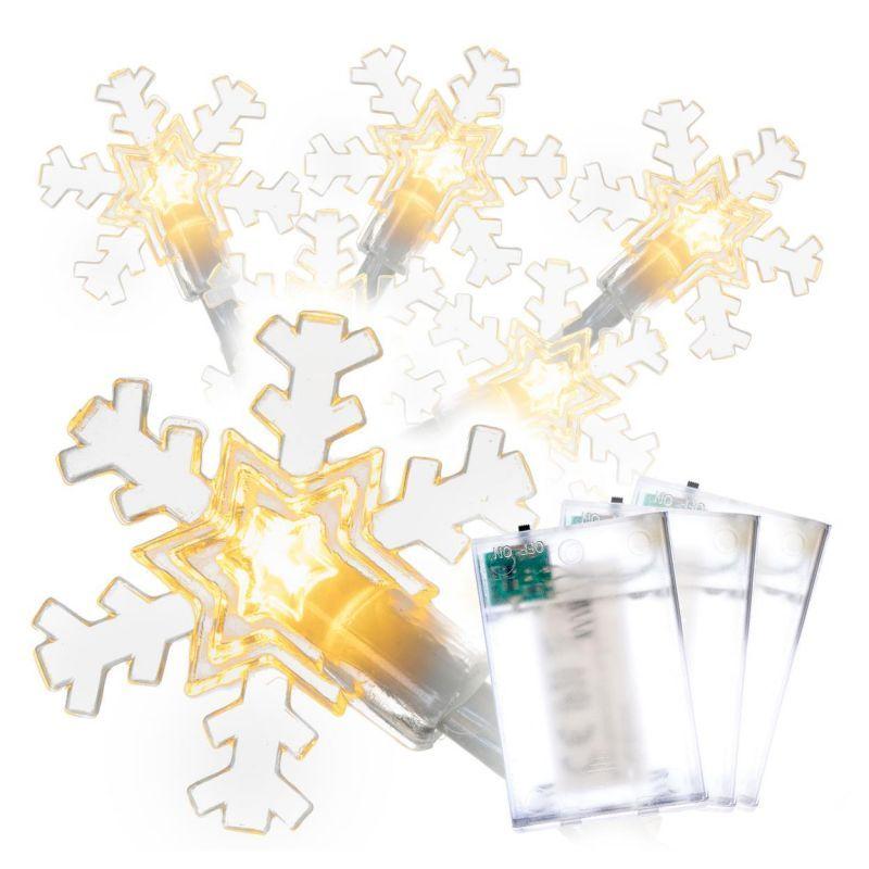 Sada 3 led vánočních bateriových řetězů s motivem sněhových vloček v délce cca 2,2 m (z toho 1,9 m světelná část, 0,3 m přívodní kabel k bateriím). Možnost automatického zapínání a vypínání pomocí časovače. Pouze pro vnitřní (interiérové) použití.