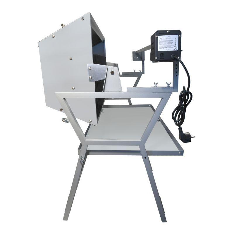 Součástí grilu je špíz s elektrickým motorem s napájením z klasické zásuvky 230V, který je konstruovaný až pro 30 kg masa. Rovnoměrné grilování zajistí pomalé otáčení s rychlostí 3 otáčky / minuta.