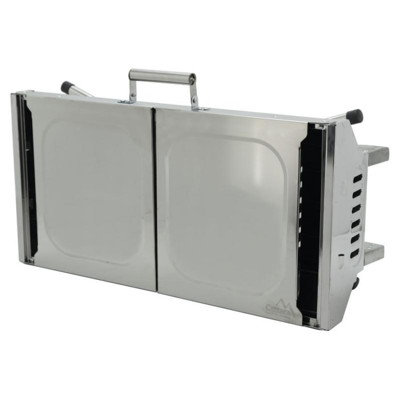 Větší skládací kempingový gril vyrobený z kvalitní nerezové oceli, který snadno složíte do kufříku s madlem pro snadný přenos / převoz. Rozměry grilu v rozloženém stavu jsou 112x30x71 cm, ve složeném stavu pak 62x32x19 cm.