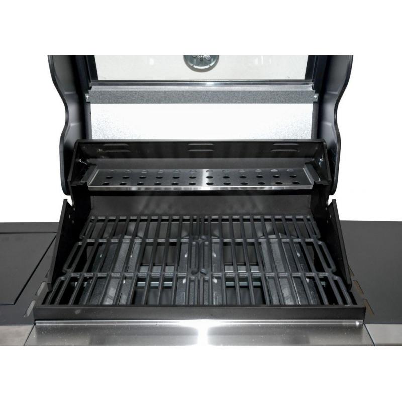 Tento plynový gril umožňuje zdravější úpravu pokrmů bez kouře a vzniku rakovinotvorných látek- díky speciálně navrženým kovovým profilům totiž mastnota neodkapává přímo na hořáky, ale je svedena okolo nich do odkapávací nádoby.