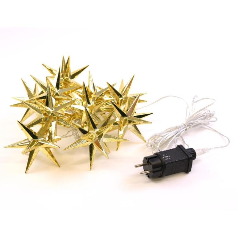 Dekorativní světelný řetěz se zlatými hvězdami, který je vhodný pro vnitřní i venkovní použití. Napájení z klasické elektrické zásuvky 230V ... Více v detailním popisu níže.